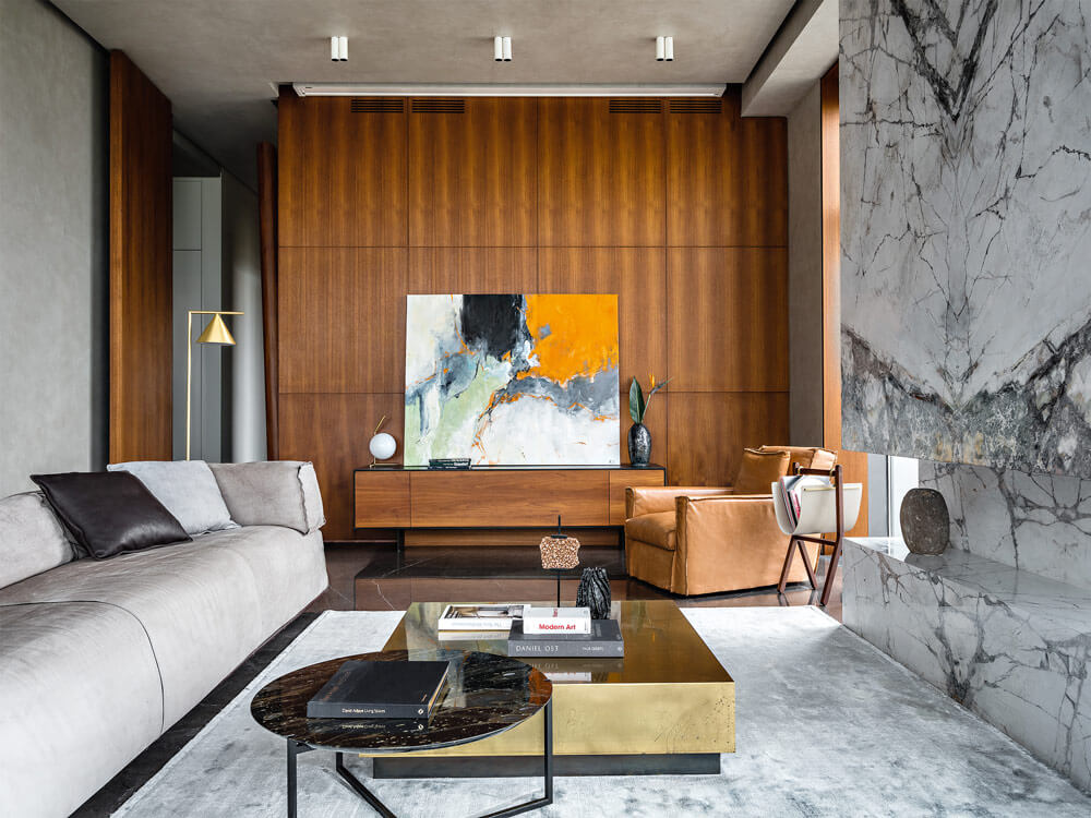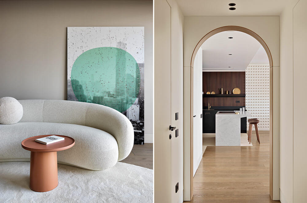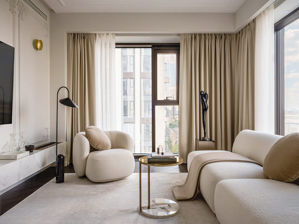 «Мой выбор — натуральные материалы. Я предпочитаю мрамор, он всегда будет смотреться благородно и дорого. Мне нравятся мягкие формы. И хотя моя стихия — минимализм, я не делаю интерьер выхолощенным, в нем должна быть эмоция. В эпоху размытых трендов стараюсь создать пространство вне времени».