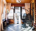 Просторная терраса, обычно залитая солнечным светом, стала более комфортной благодаря текстилю, теперь здесь комфортно и в полуденный зной и зимними вечерами. Две зоны: одна — для светских бесед и чаепитий и вторая — для душевной приватной беседы, разнесены в противоположные углы помещения.