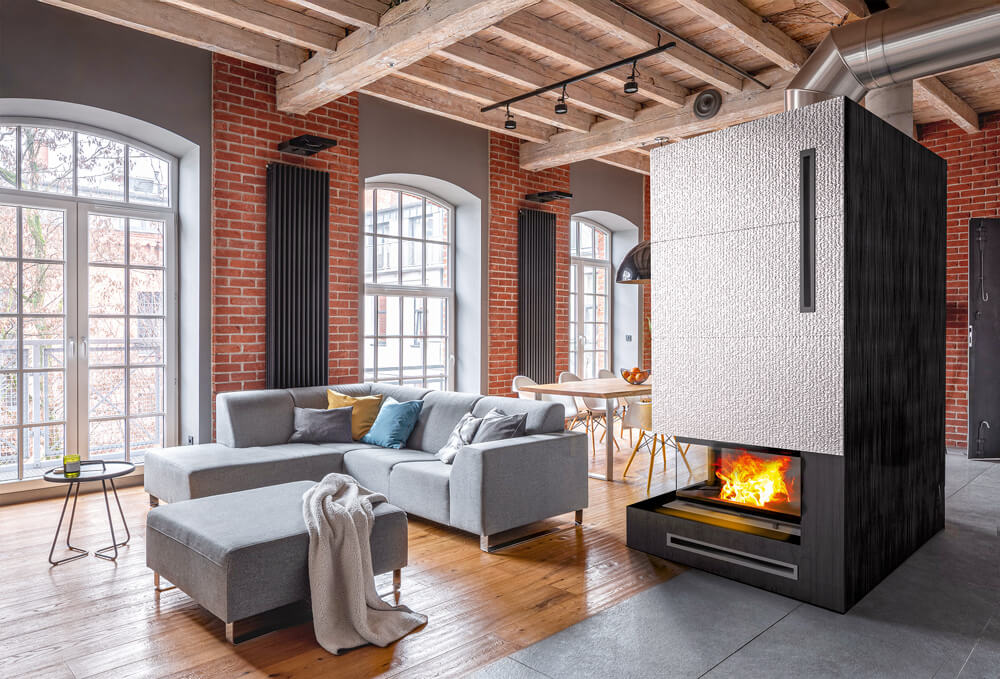 К тому же каминная печь быстрее разогревается и быстрее начинает отдавать тепло в помещение, правда, и остывает она быстрее. Камин, обладающий большей массой, разогревается чуть медленней, но отдает тепло дольше. Особенно этот эффект ощутим, если вы выбираете камин, дополненный термоаккумулирующими элементами или же выполненный из камня, например, из талькомагнезита или талькохлорита. Такой камин продолжает отдавать тепло до 48 часов после окончания топки.