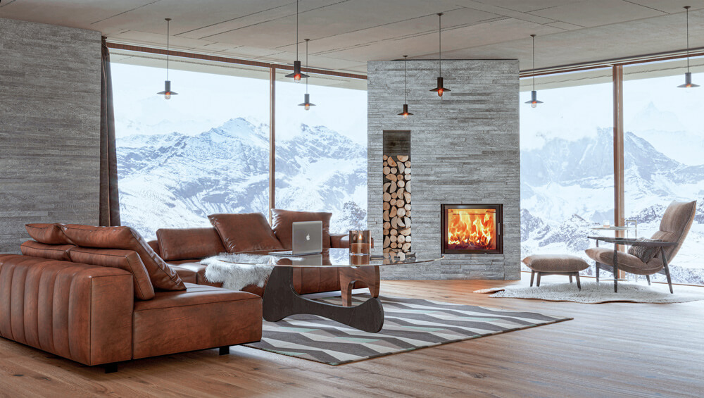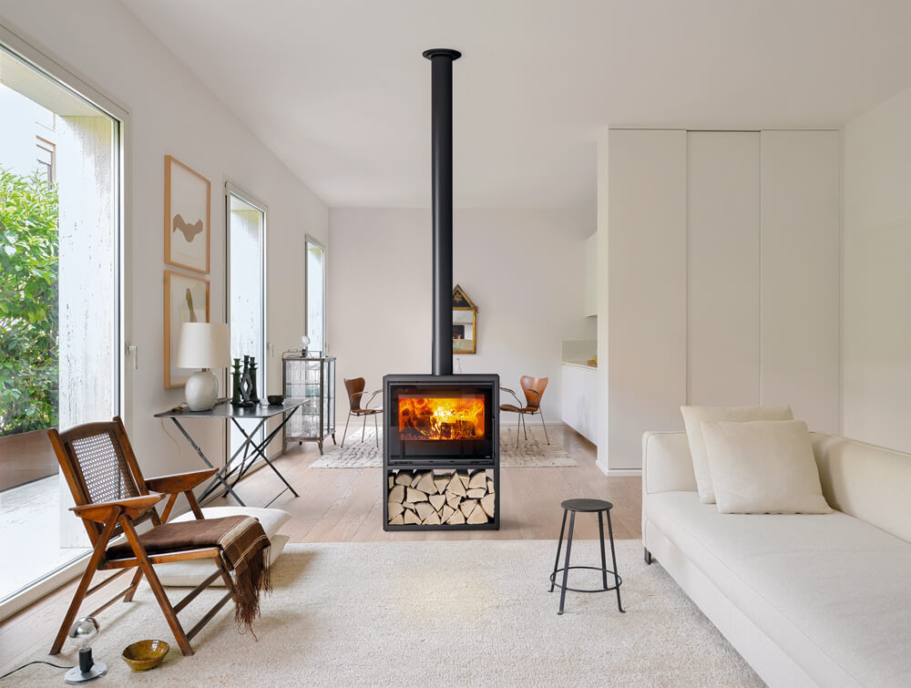 Дровяная каминная печь минималистичного дизайна MCZ Steel® (Италия) с небольшим местом для дров