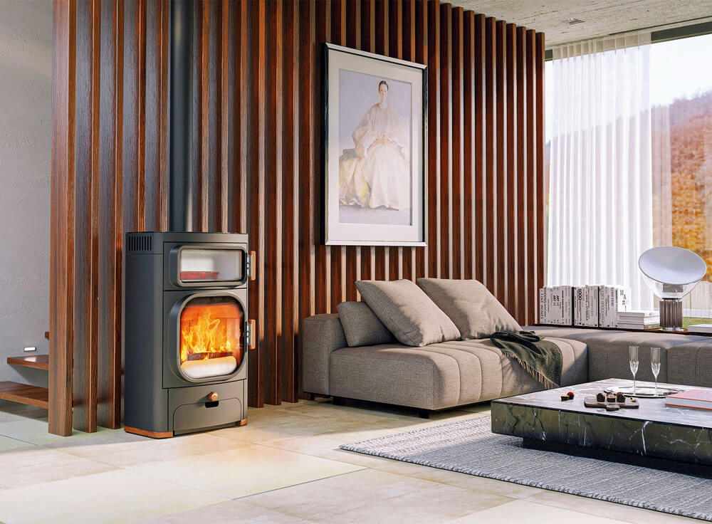 Austroflamm Heidi® — каминная печь с небольшим духовым шкафом над топочной камерой