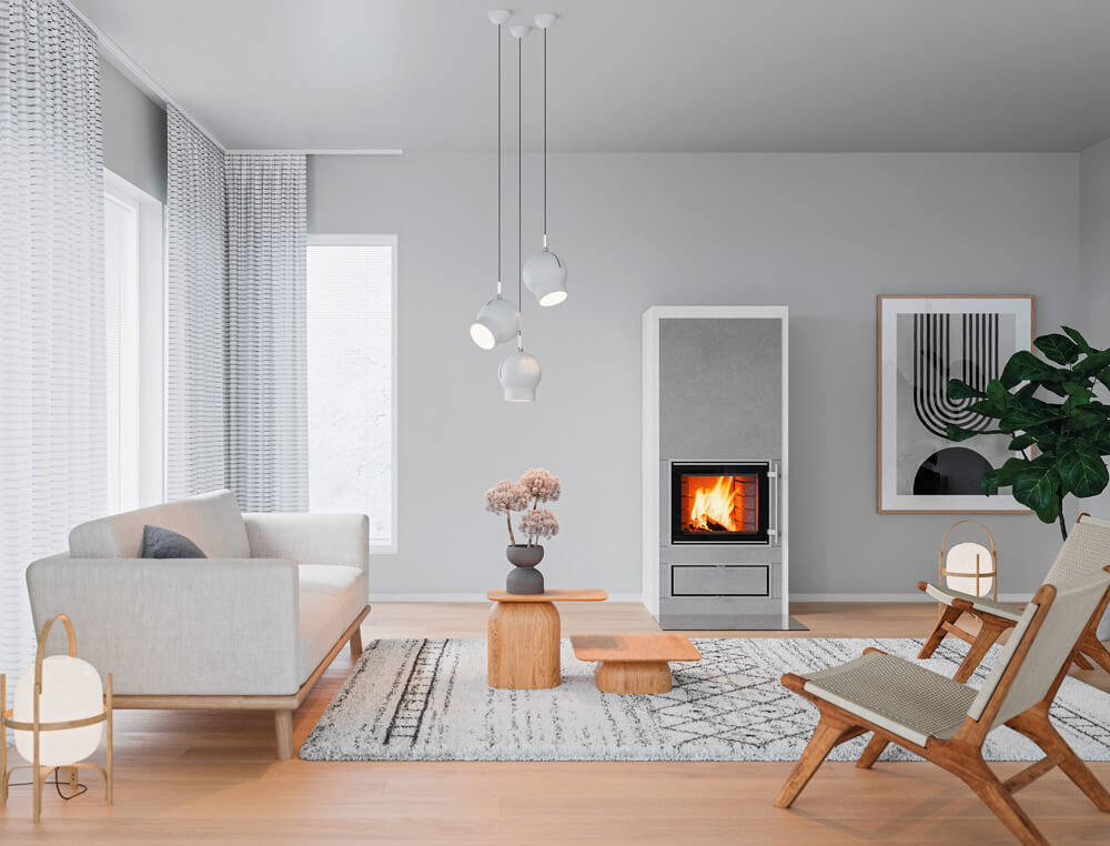 Стильный камин Tulikivi Jaani® (Финляндия) с оштукатуренной поверхностью