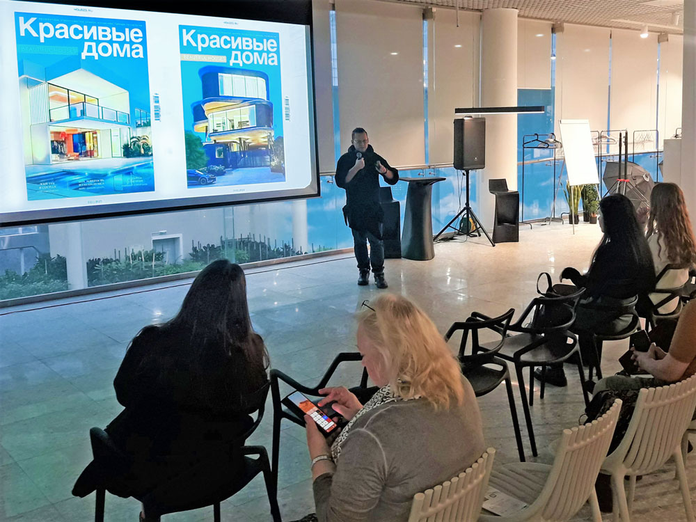 В деловую программу было включено выступление спикера от ИД «Красивые дома пресс» Ильи Экономова, которое привлекло внимание аудитории и вызвало большой интерес у дизайнеров интерьера, ландшафтных дизайнеров, руководителей дизайнерских студий и других специалистов.